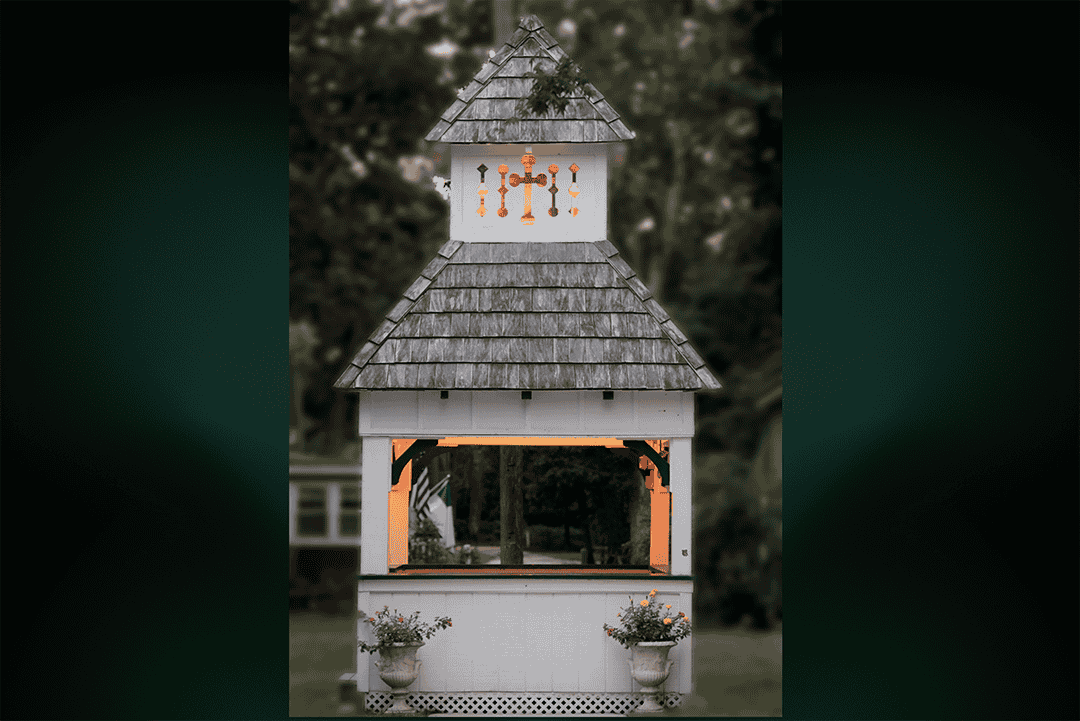 The Bell Tower was completely rebuilt of cedar by his family to the Glory of God and in memory of Harry E. Taylor, a cottager from 1944-1997. This bell hangs in the newly constructed bell tower and is rung for the opening and closing of camp and call to services.